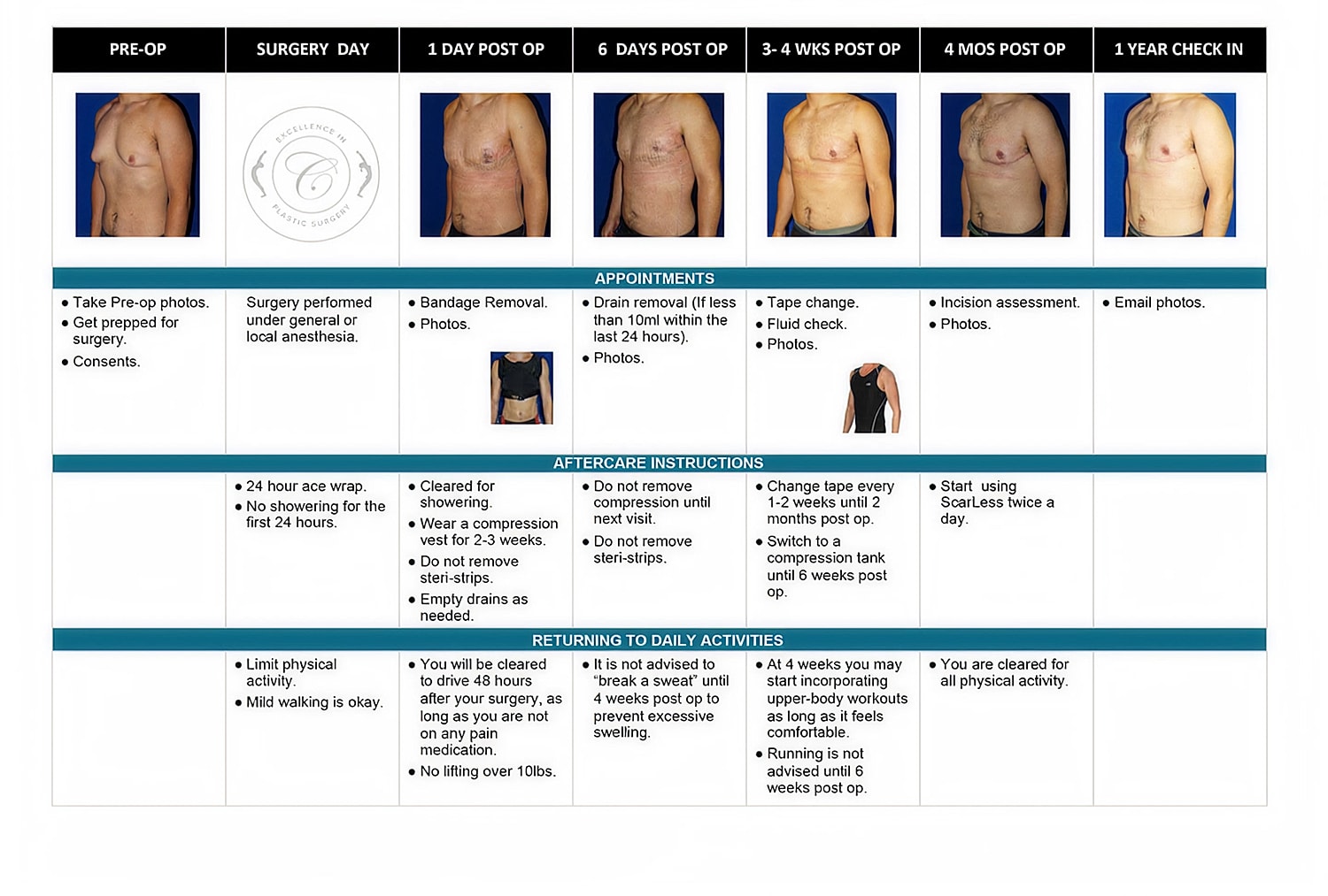 Our photo gallery displays a large variety of male breast reduction before/after pictures representing every type of gynecomastia.